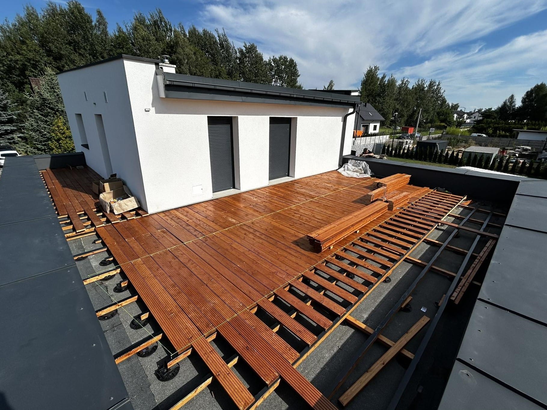 Zwykle 1–3 dni przy standardowej powierzchni 15–30 m². Dokładny czas zależy od podłoża, materiału (drewno/kompozyt) i detali (schody, oświetlenie lub barierki).